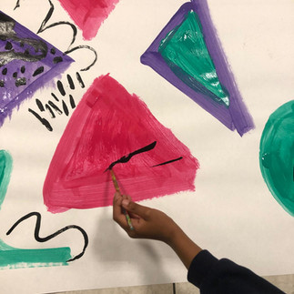L’atelier s’adressait à des enfants de 3 à 10 ans, avec une consigne volontairement minimale. Chacun était invité à créer des formes colorées, en veillant à ne pas mélanger les couleurs. Une fois ces aplats posés, les enfants pouvaient revenir dessus à l’encre de Chine, pour y ajouter des détails, des traits, des expressions… et surtout, faire émerger des personnages, des animaux ou des paysages à partir de formes indéfinies.